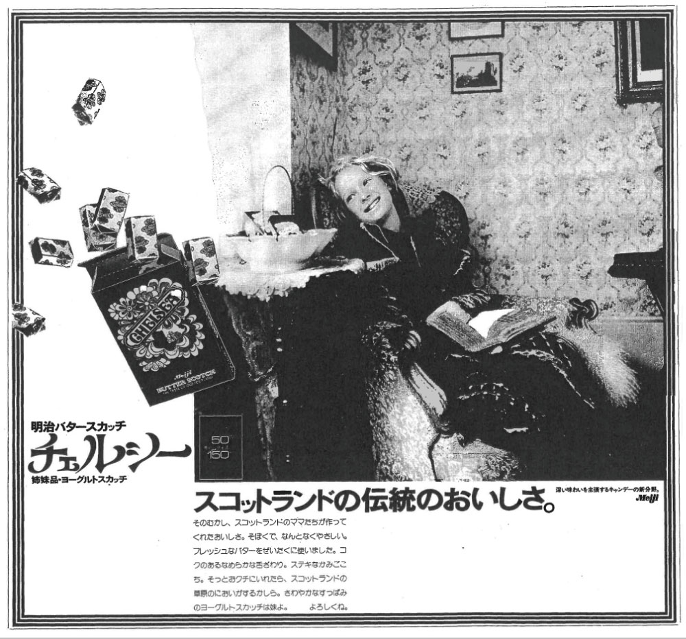 この広告で新たな発見があった。チェルシーがママの味なのは、ママが買ってきてくれるからではない。「そのむかし、スコットランドのママたちが作ってくれたおいしさ」だからなのだ。